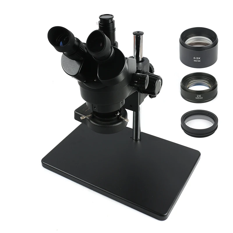 HOT Sale 3.5X-90X Continuous Zoom Trinocular Stereo Microscope +Big size metal stand 0.5X/2X Auxiliary Objec